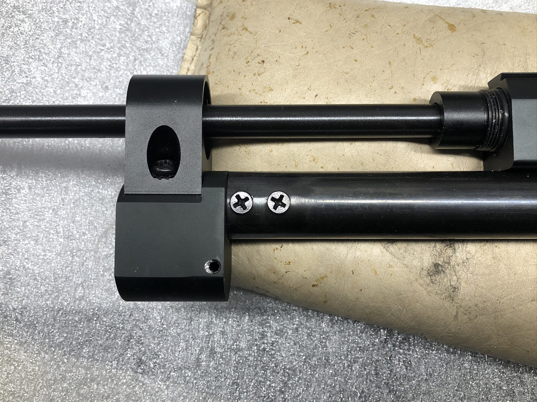 The poor barrel stiffness issue caused huge point of impact changes with only slight physical contact with the barrel shroud was made. The POI issue was solved by the community with things like barrel bands, woodblocks and other ingenious ways to support the barrel shroud. I offered a barrel band which introduced additional support from the bottle to the barrel shroud, Well Umarex picked up on this issue and quickly designed an integrated barrel shroud support system that attached to the bottle block. This barrel shroud support that is being included on the then new .25 Caliber, was promised to previous Gauntlet owners as a part that would eventually be available. It was also said that this new improvement would be included on any fractional generation .177/.22 caliber Gauntlets produced.