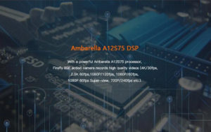 – Ambarella A12S75 and with SONY IMX117 12 Mega WDR CMOS Sensor.
