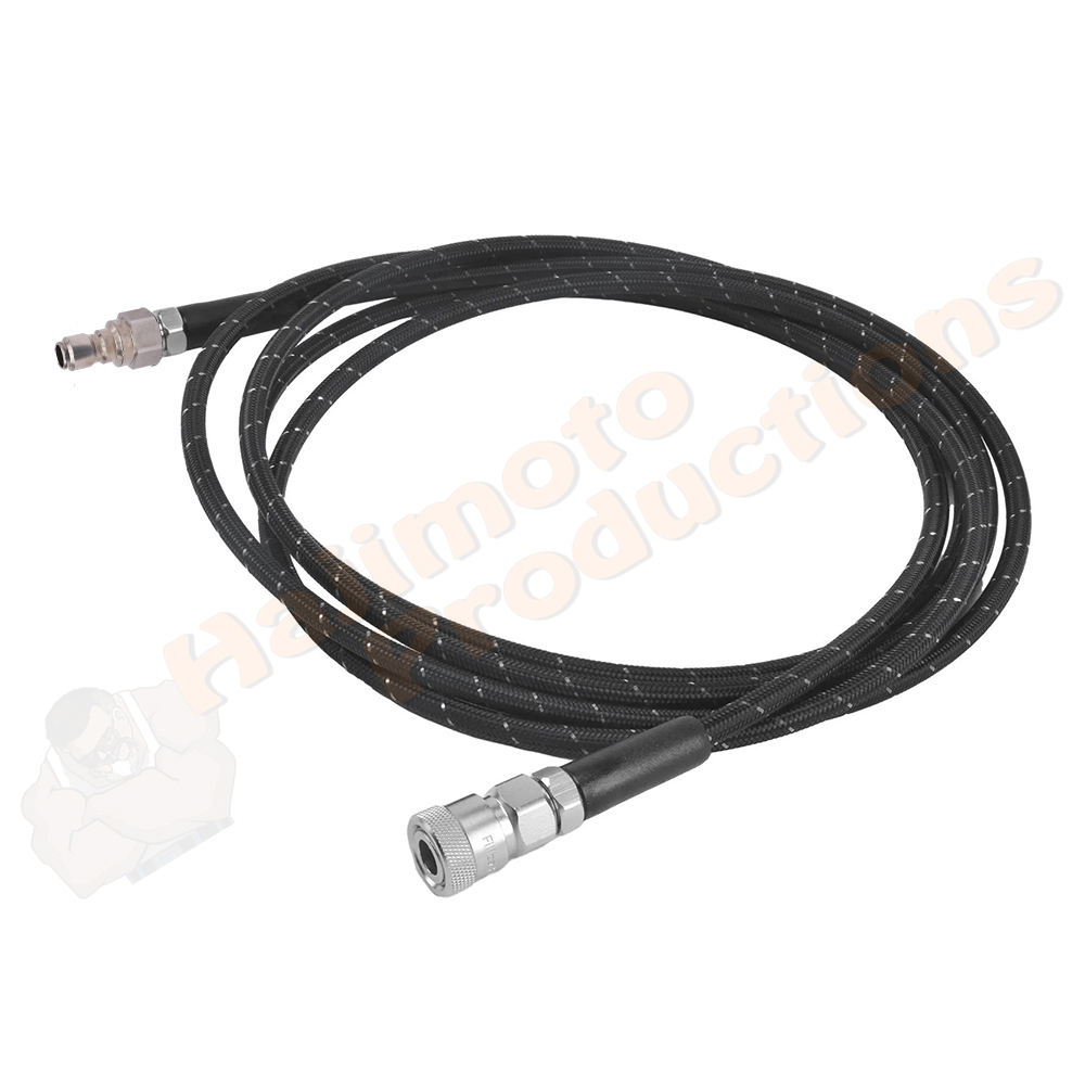 This is a high quality heavy duty high pressure fill whip that Hajimoto Productions had made to 47″, which provides a more reasonable amount of slack and distance when using a portable compressor or fill tanks than other whips on the market.