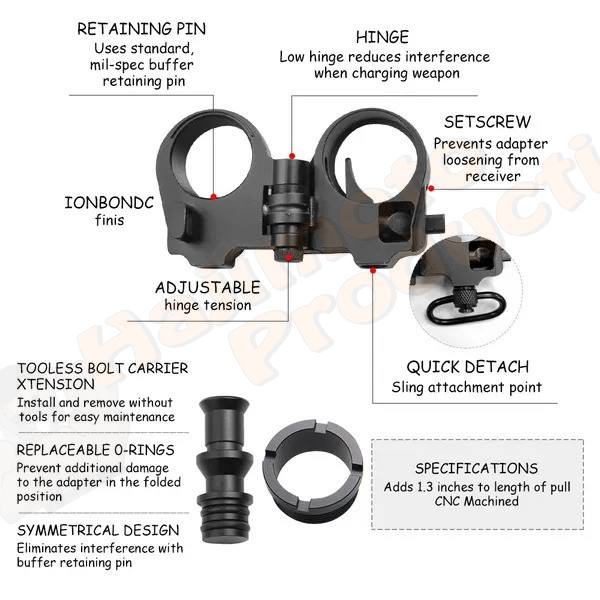 A robust and reliable stock folding adapter that allows your PCP to take up 30% less space in your bag or back pak. This style #2 folder is an excellent choice for anyone looking to improve the versatility and portability of their tactical style PCP.