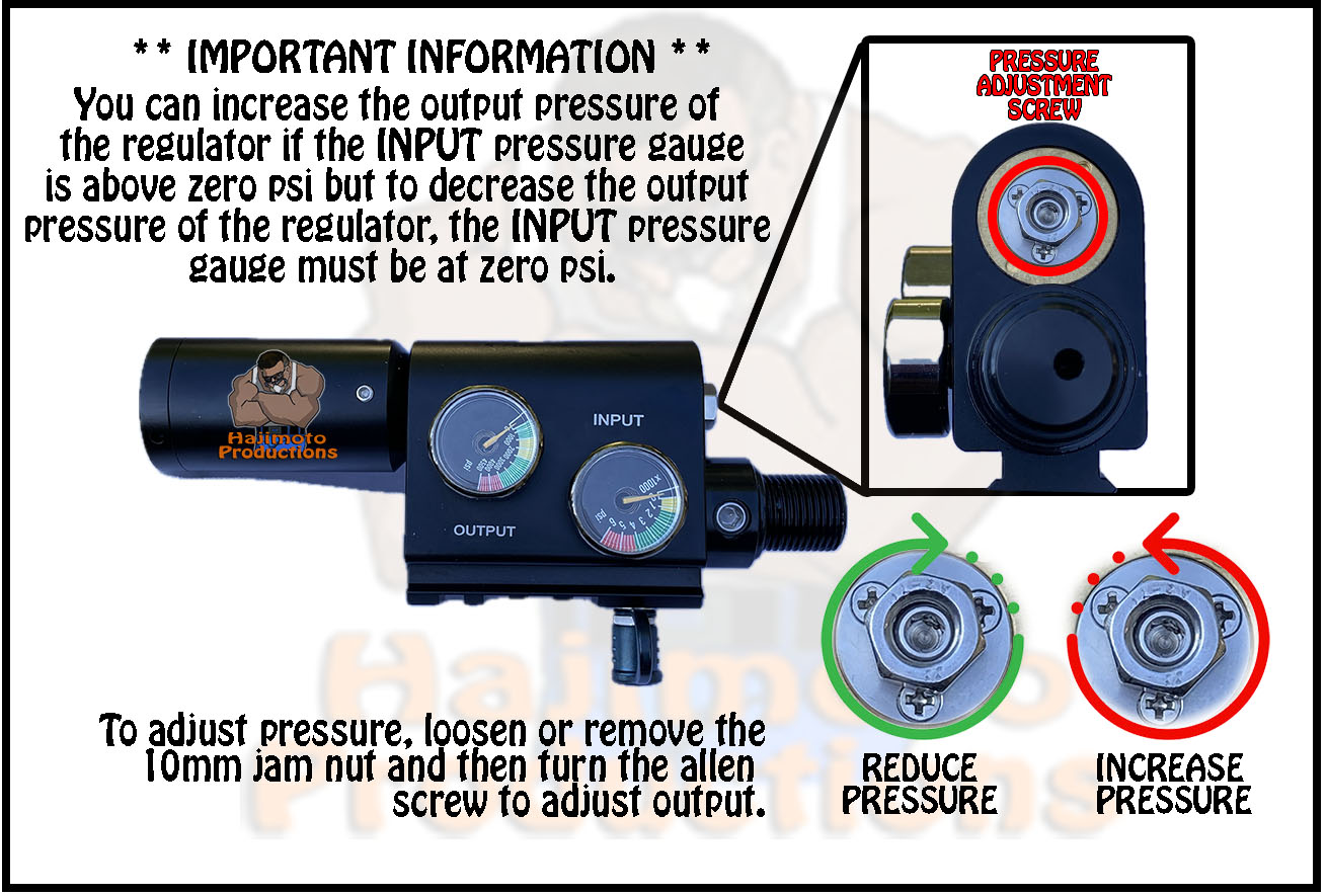 These very stable and precise pressure regulators can be adjusted external to the PCP. While this is a great convenience, specific adjustment operations must be followed, otherwise a damaged regulator will result.